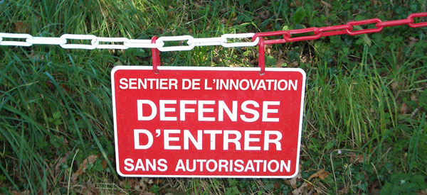 - Image « Sentier de l’innovation Défense d’entrer » par Fabrice Epelboin publiée sur http://fr.readwriteweb.com/2010/08/26/a-la-une/orange-donne-aperu-de-linternet-sans-neutralit-du-net/ – Licence Creative Commons BY
